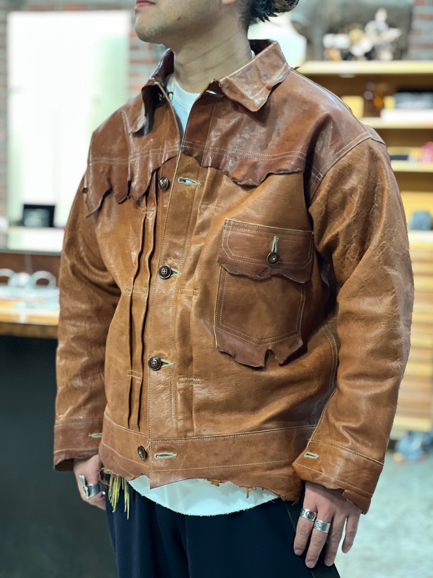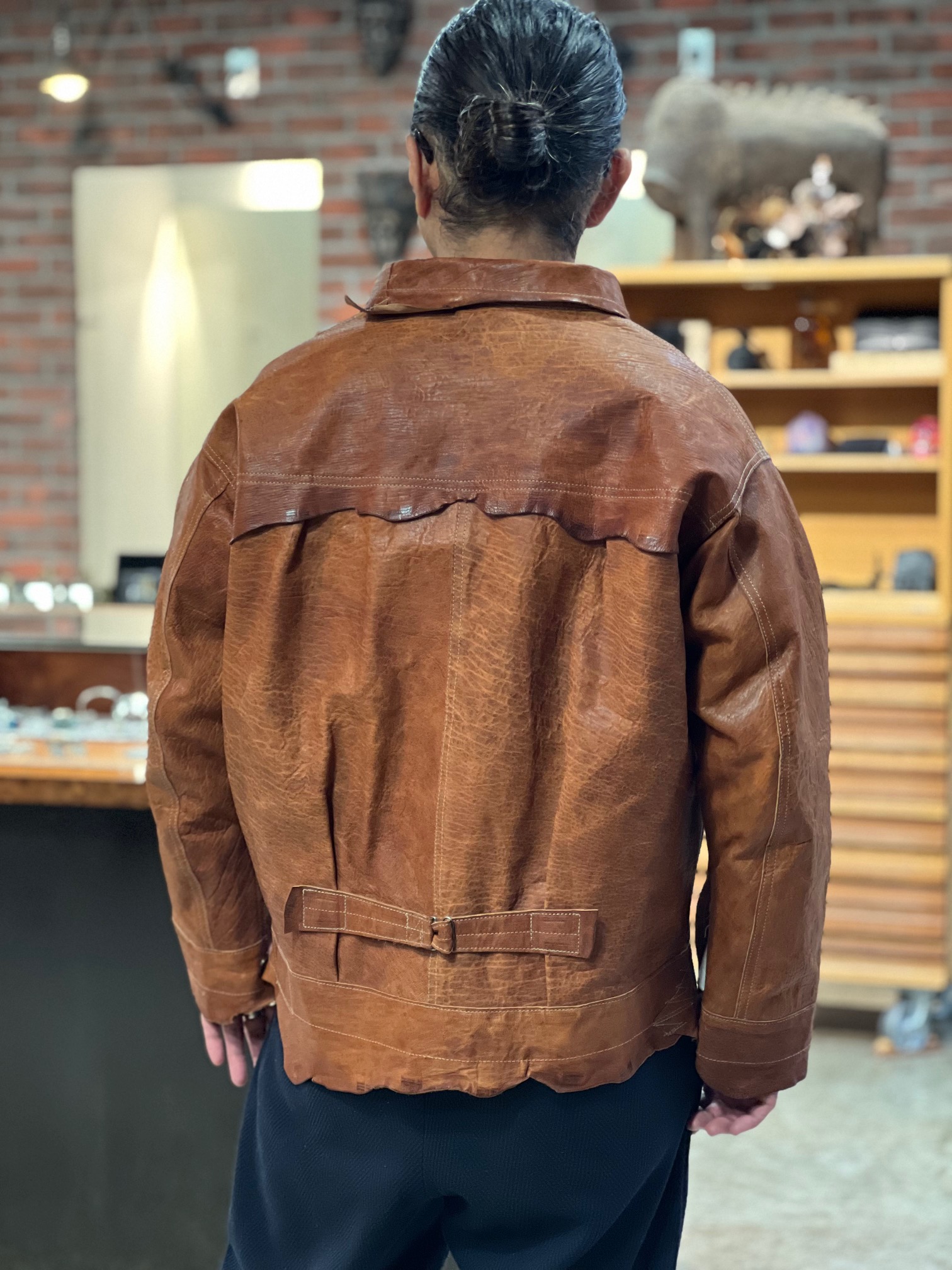 エゾ鹿という素材の面白さ、袖口や着丈等各所のナチュラルエッジやクラフト感が生み出す1点物感。