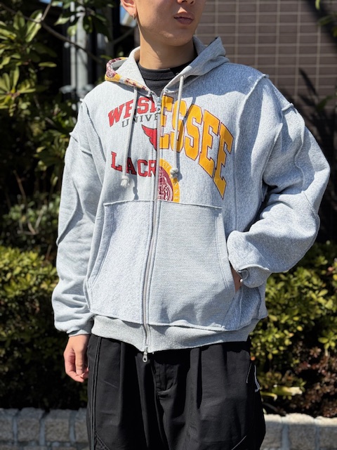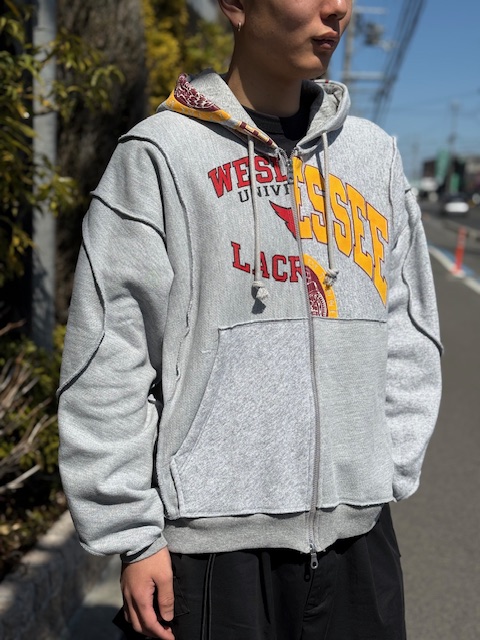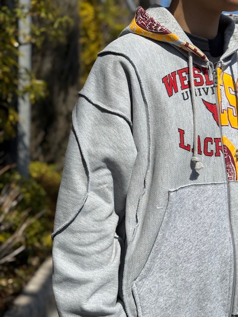 数枚のused sweatを解体して、デザイナー自ら配置を決め商品化されてます。