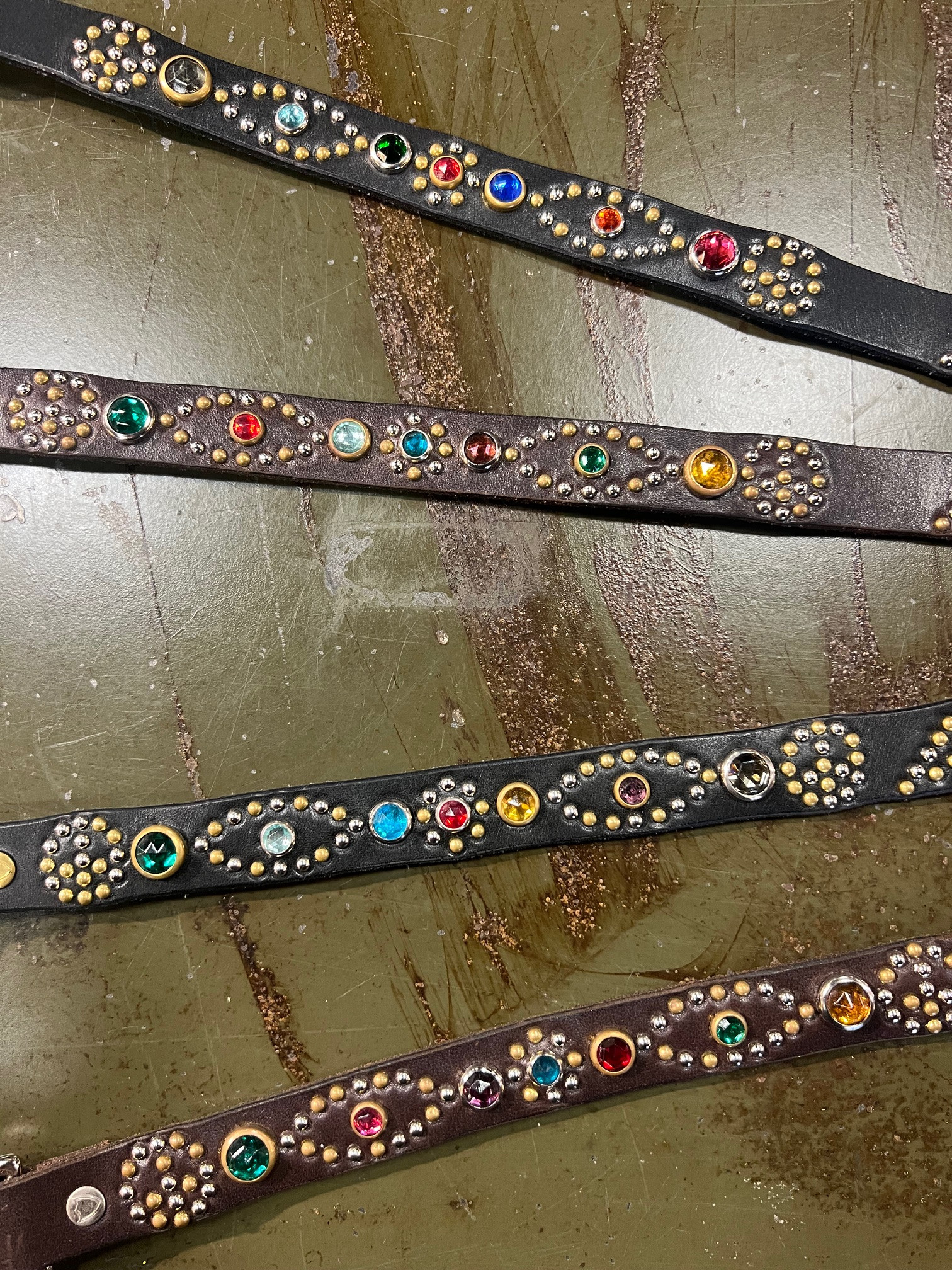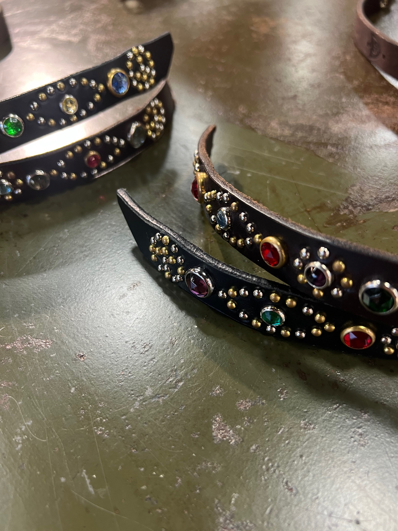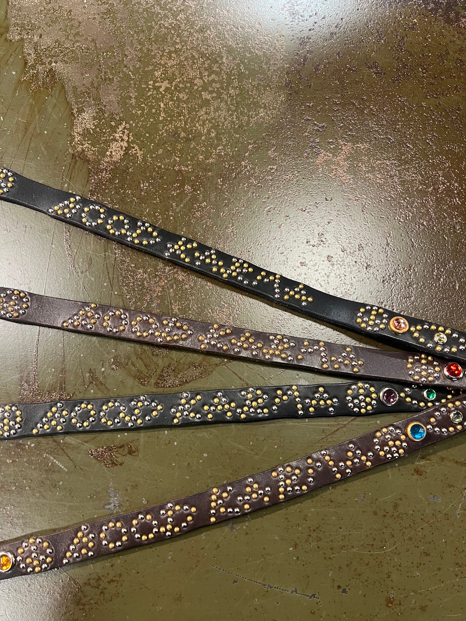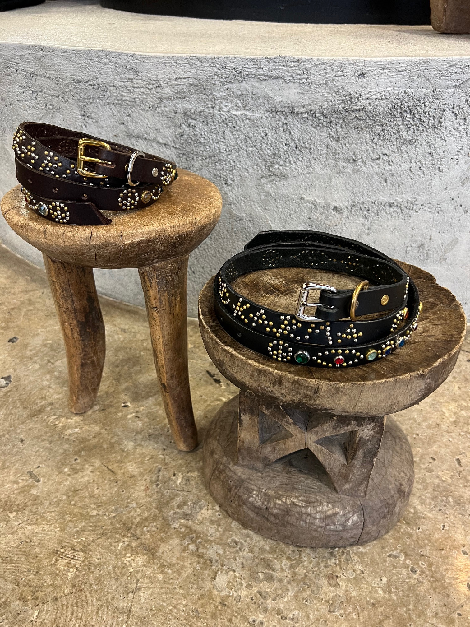 細幅のベルトにこれでもかという位にビシっと打ち込まれたスタッズ。