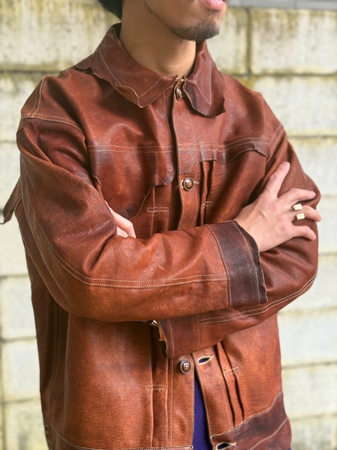 従来のBrownのレザージャケットは、均一な色味が当然になりますので。