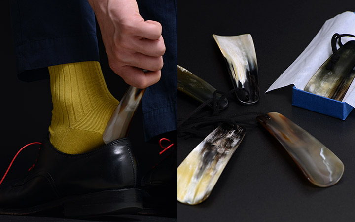 職人の伝統的手法により天然の水牛の角から一本一本削り出で作られた靴べら。滑らかな使い心地、確固たる強度を持ち、量産の物とは比べ物にならない重厚な佇まいは、貴方の愛靴と素晴らしい相性を持つことでしょう。
