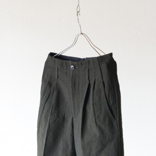 ウエストには深いダブルプリーツを入れ、テーパードをかけたシルエット。