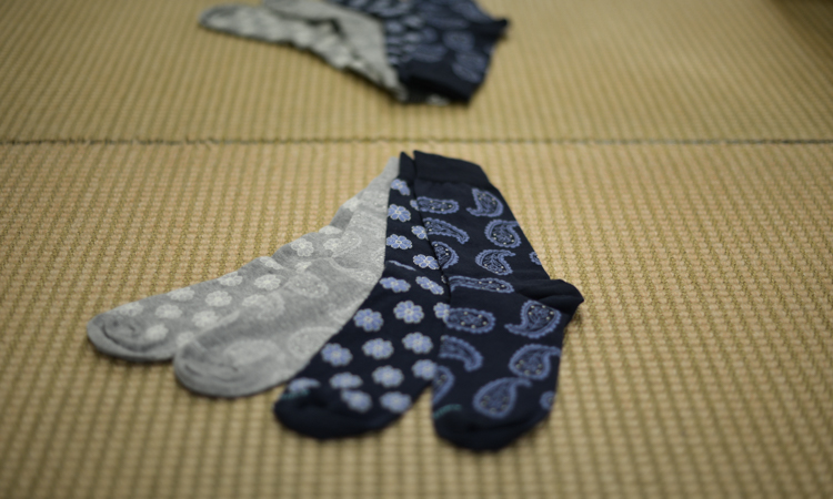 今回はソックスで。Navyベース、Greyベースにフラワー柄とペイズリー柄のネガティブ履き。