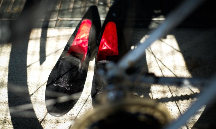 ベルベットのスリッポンというだけでもかなりの曲者。