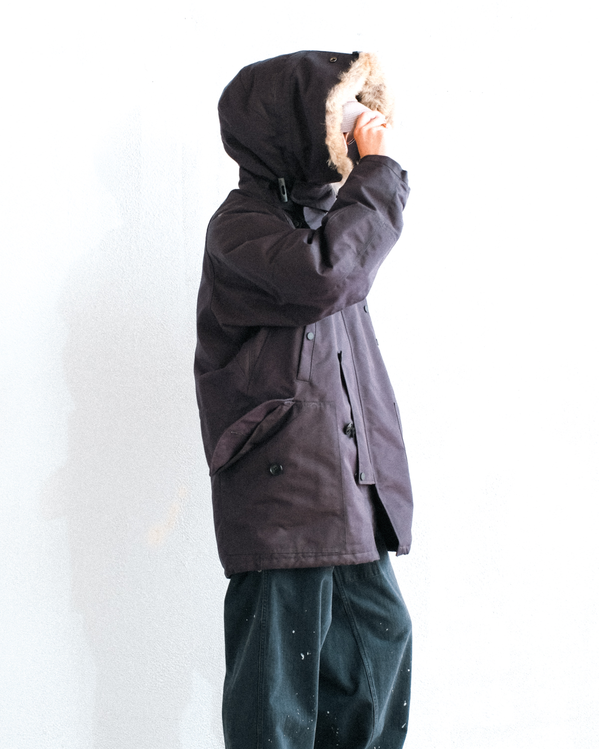 コヨーテファーによるボリューミーさが魅力で、顔全体にボアが触れるため暖かさもかなりのもの。