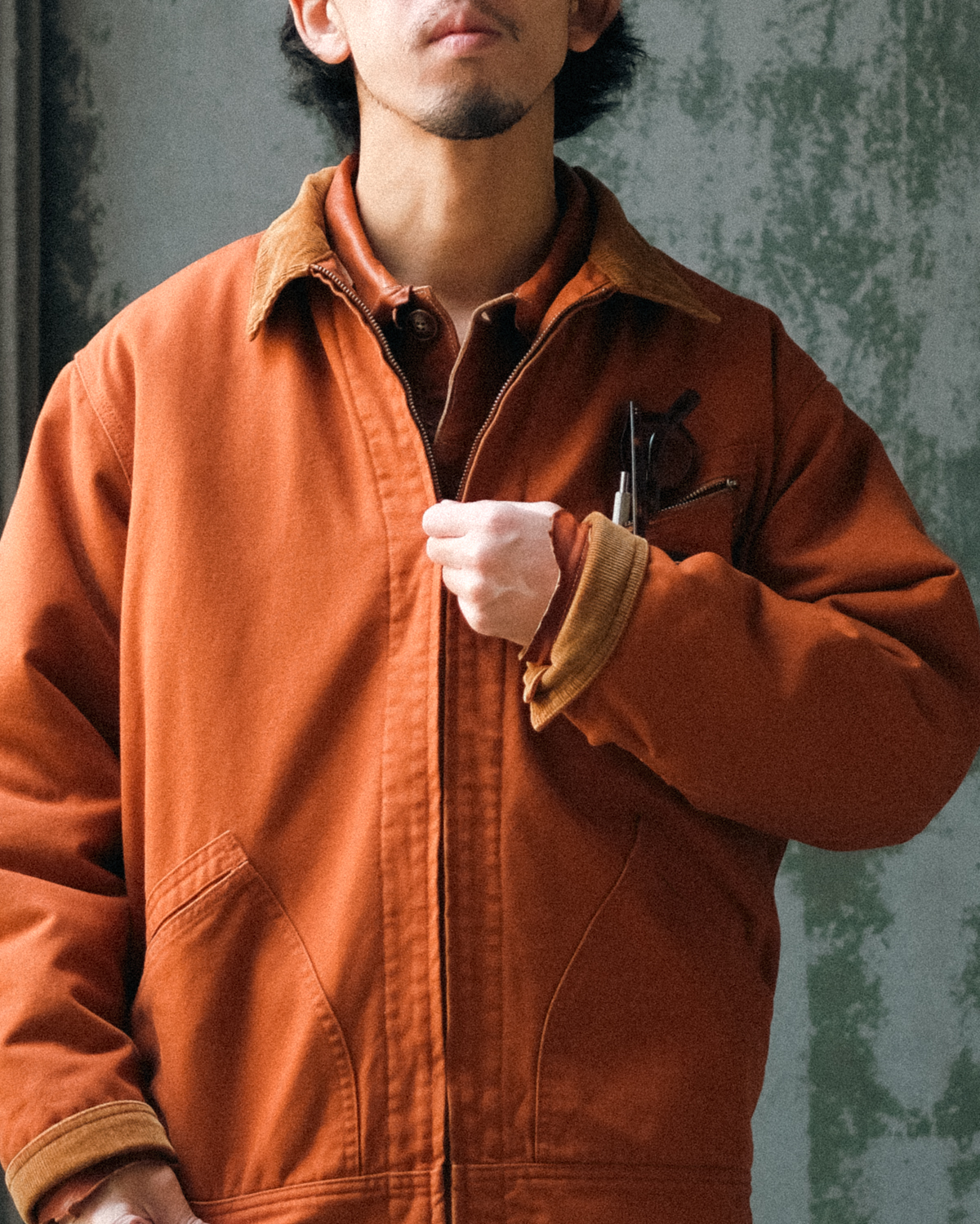 この何ともアメリカしているブリックカラーに惹かれてセレクトしたワークジャケット。