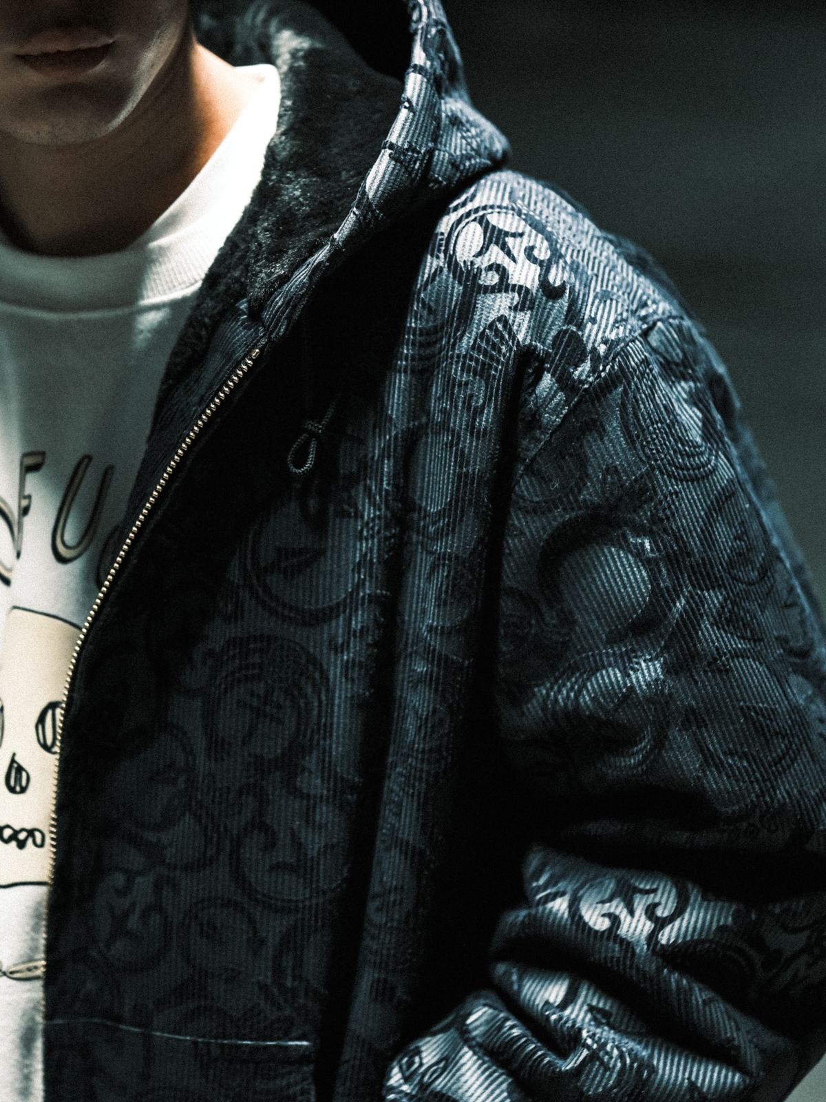 また袖裏はキルティング、フードと身頃裏はアクリルファーと、冬のアウターとしての機能性も十分。