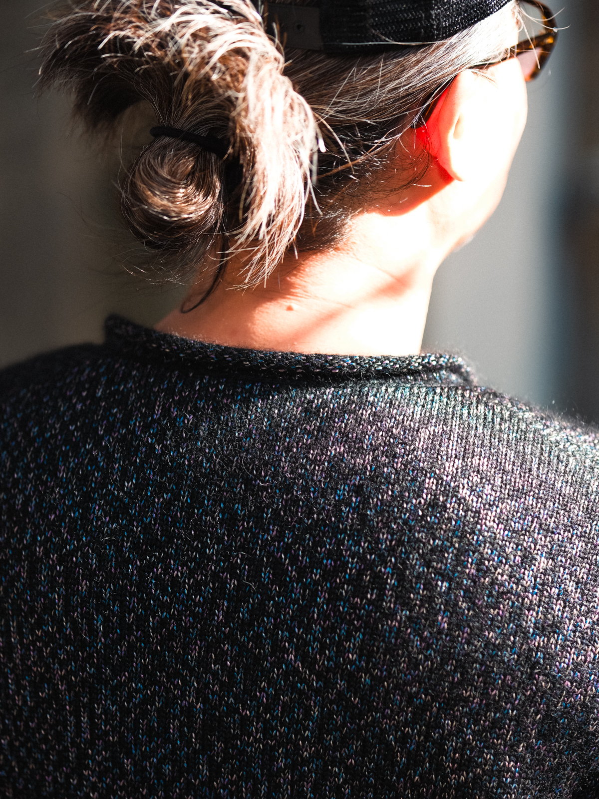 現在ではほとんど残っていない古い家庭用のハンドフレーム(手横網機)を用いて編まれたニットは、