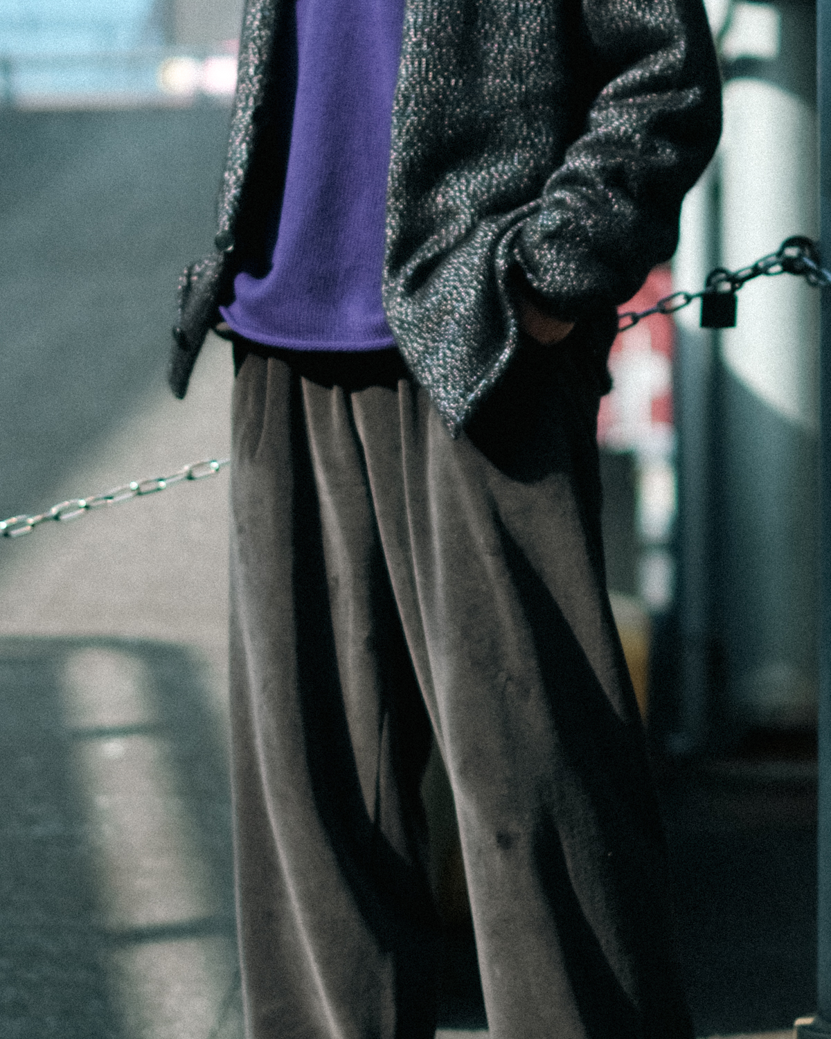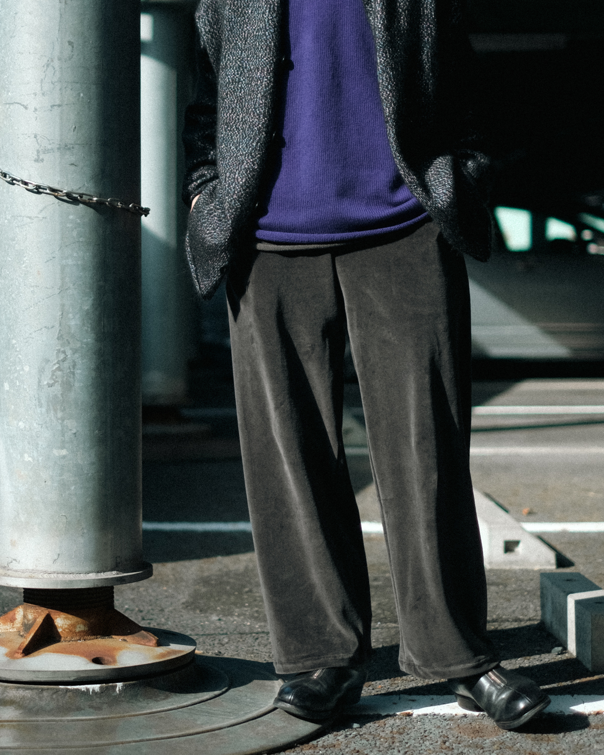 ベロアならではの表情を、スタイリングのアクセントにしてみてください。