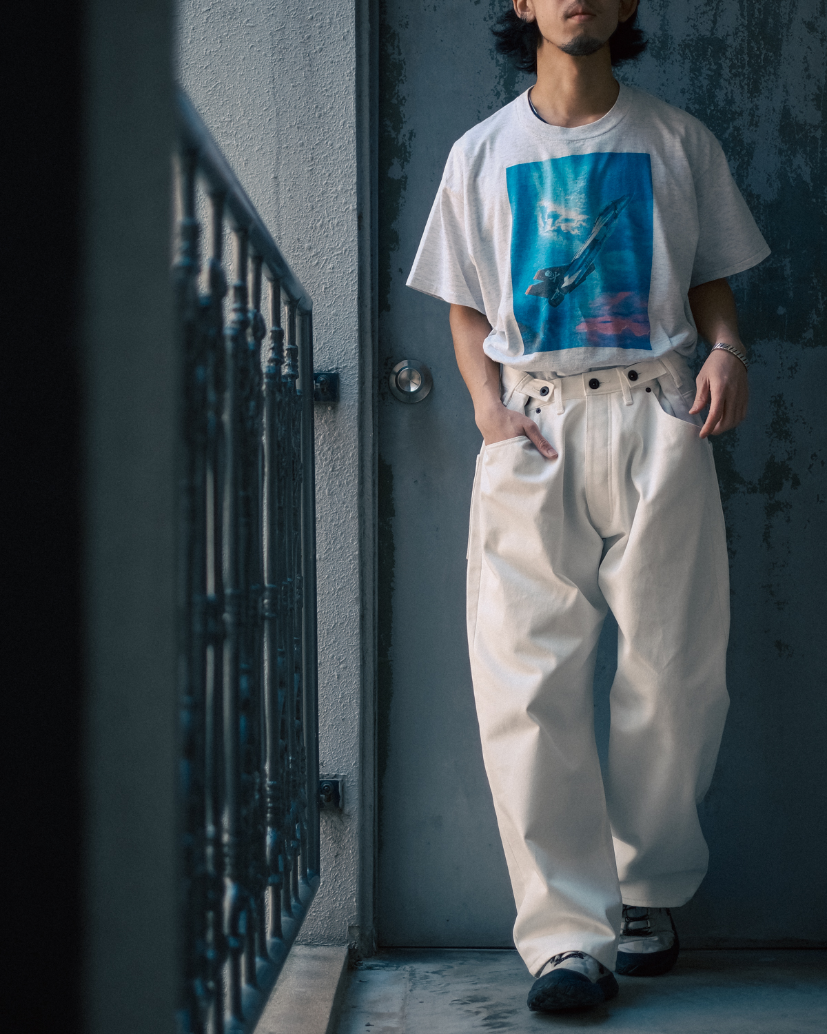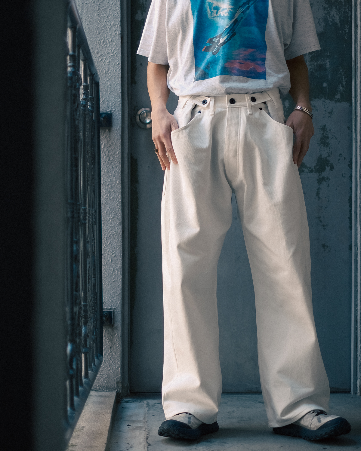 素材は程よいオンスのホワイトデニム。