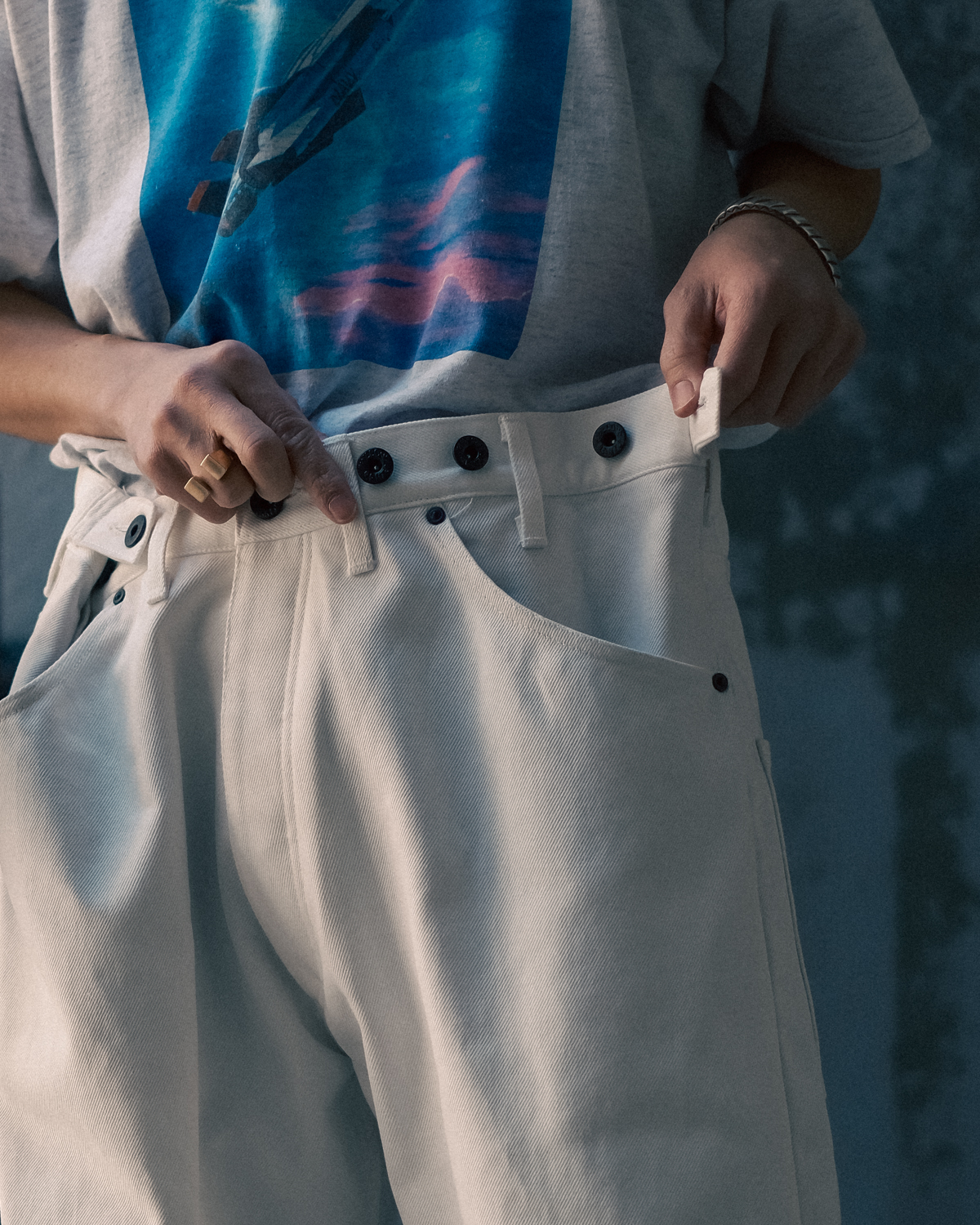 そういったものがどんどん重なっていくことで、ホワイトデニムは完成します。
