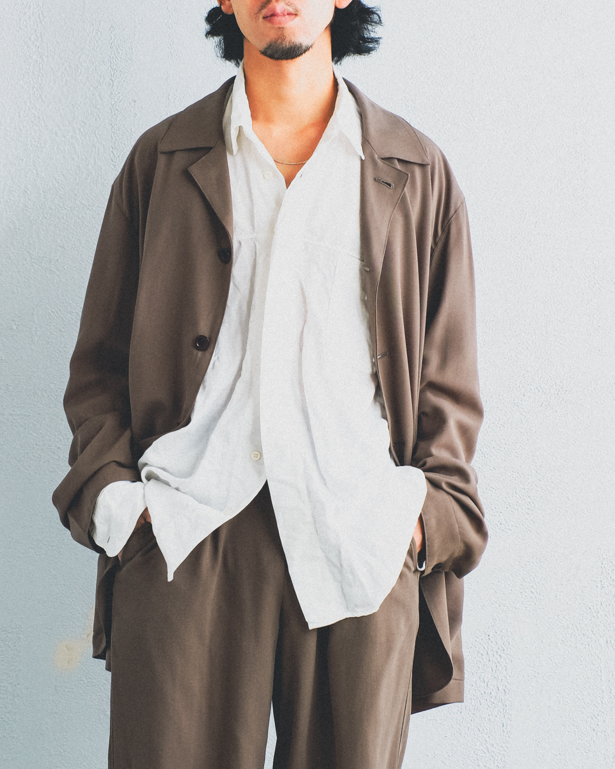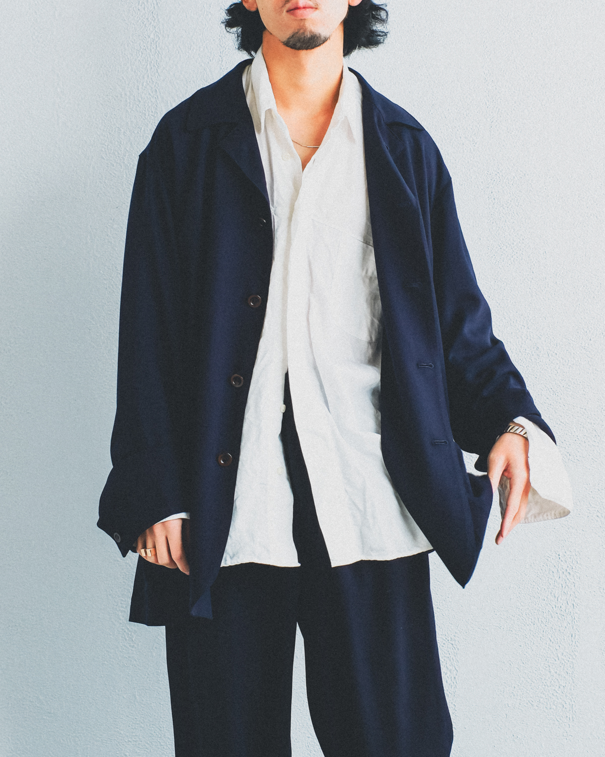 袖と着丈を長く設定することで、この力の抜けたバランスに仕上がっています。