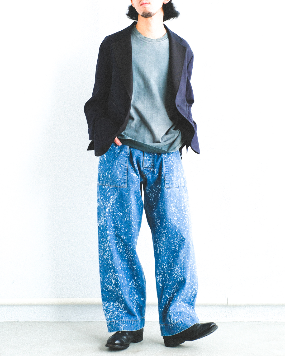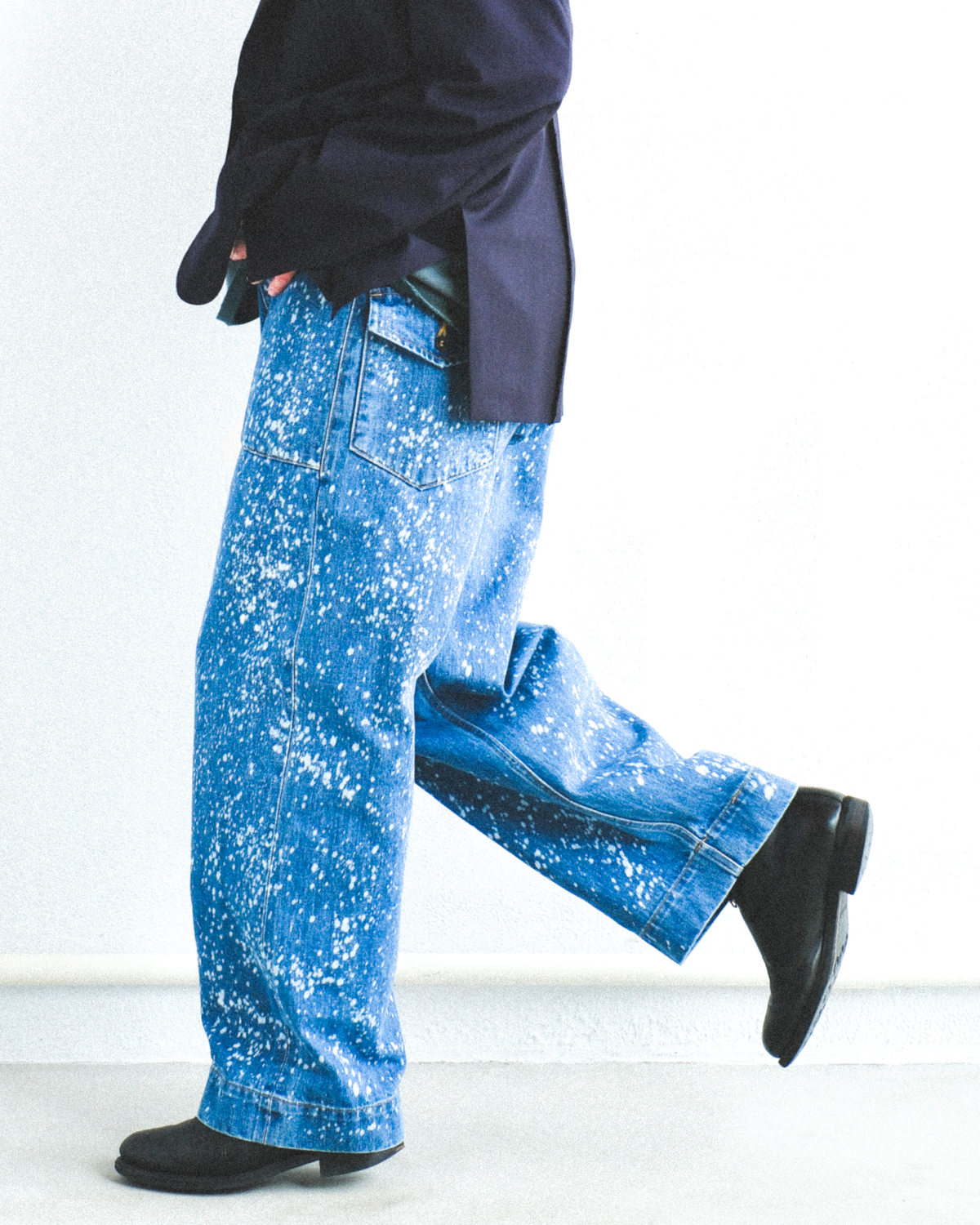 飛沫状のブリーチ加工がアクセントとなった1本です。