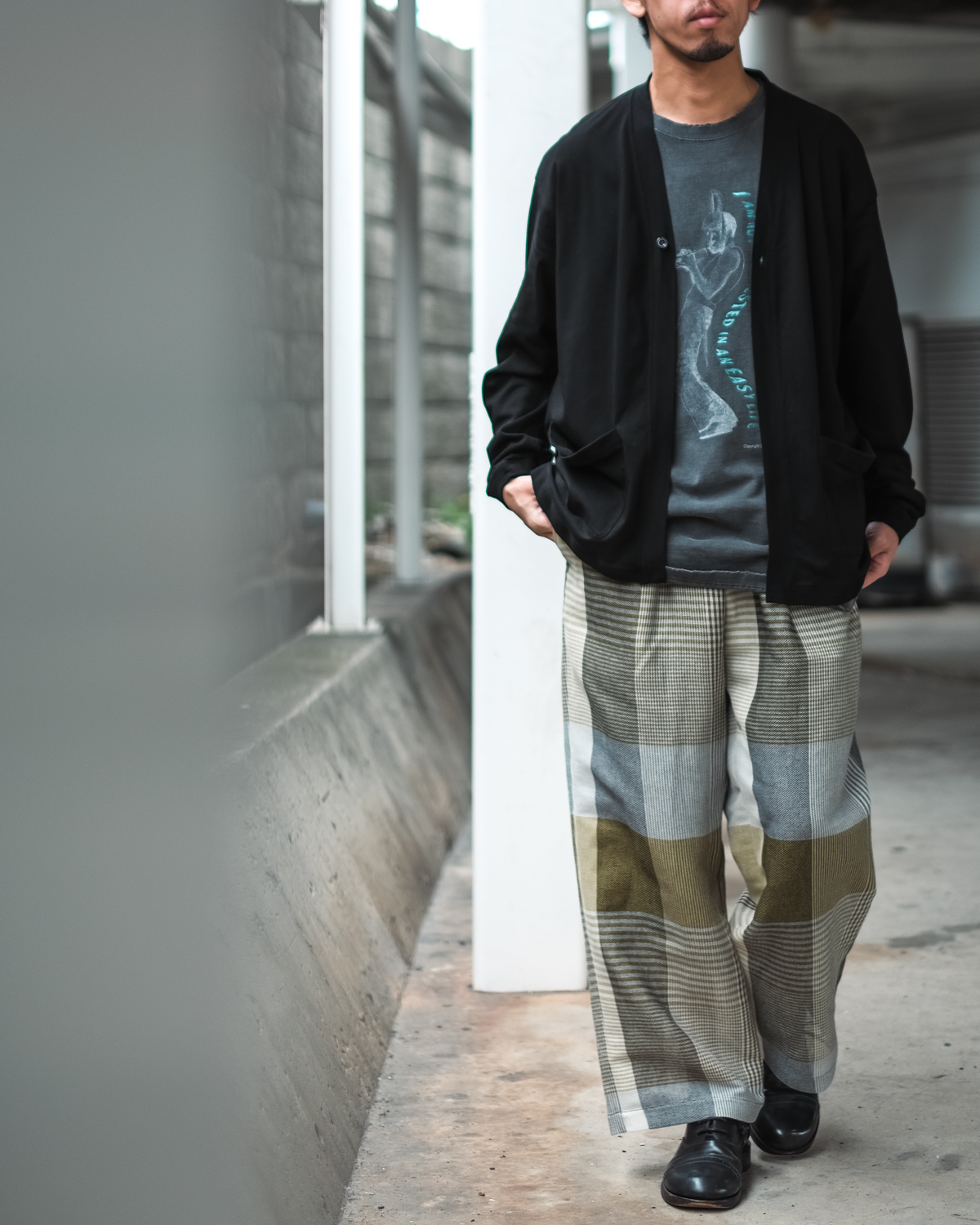 綺麗なシャツに重ねるのはもちろん、あえてダメージ加工の入ったTシャツと合わせてみても素敵です。