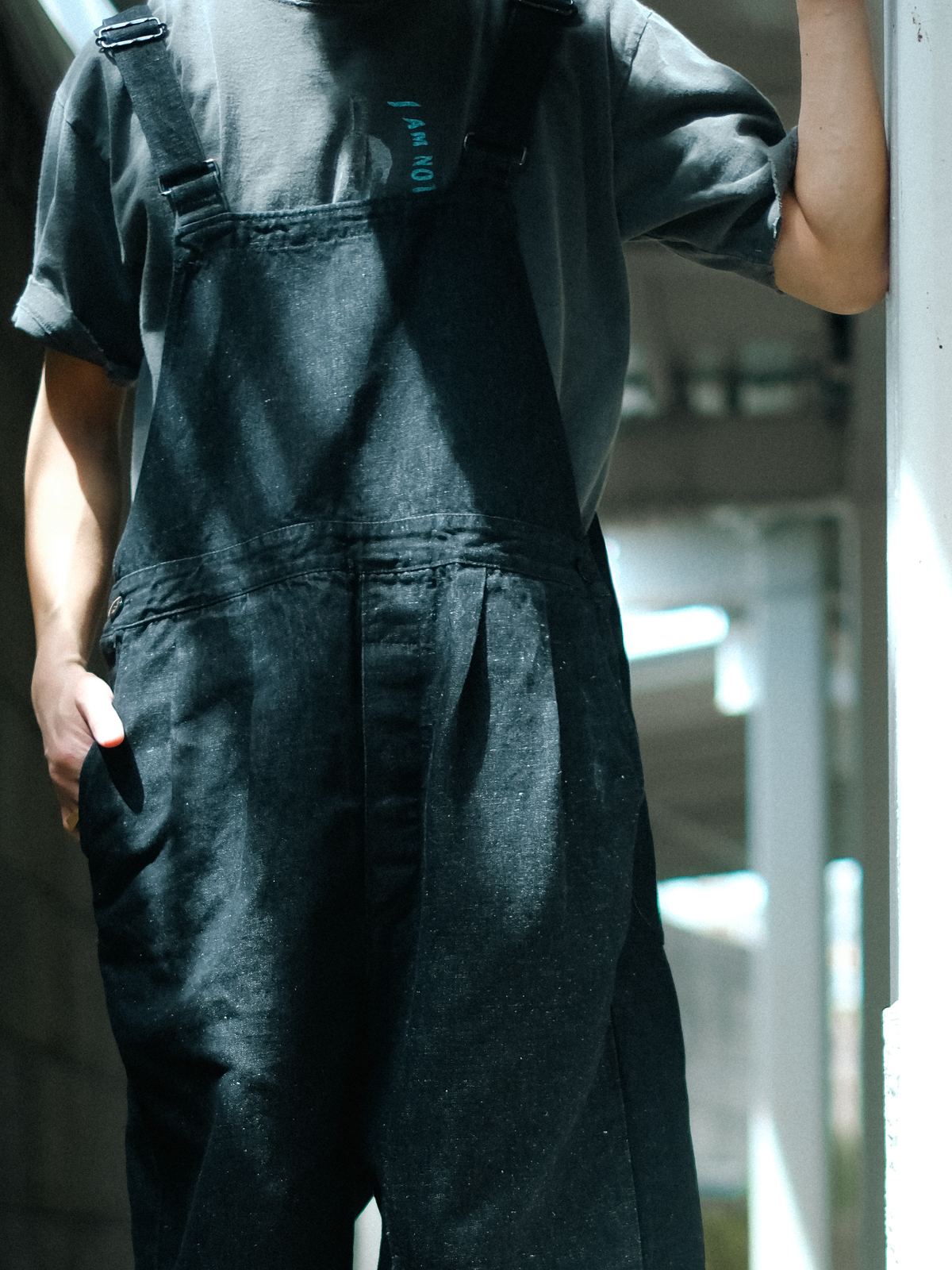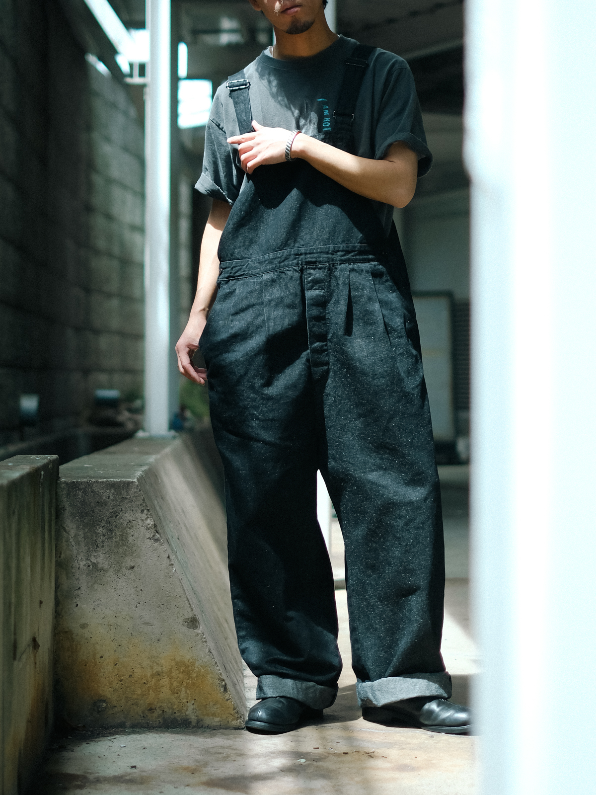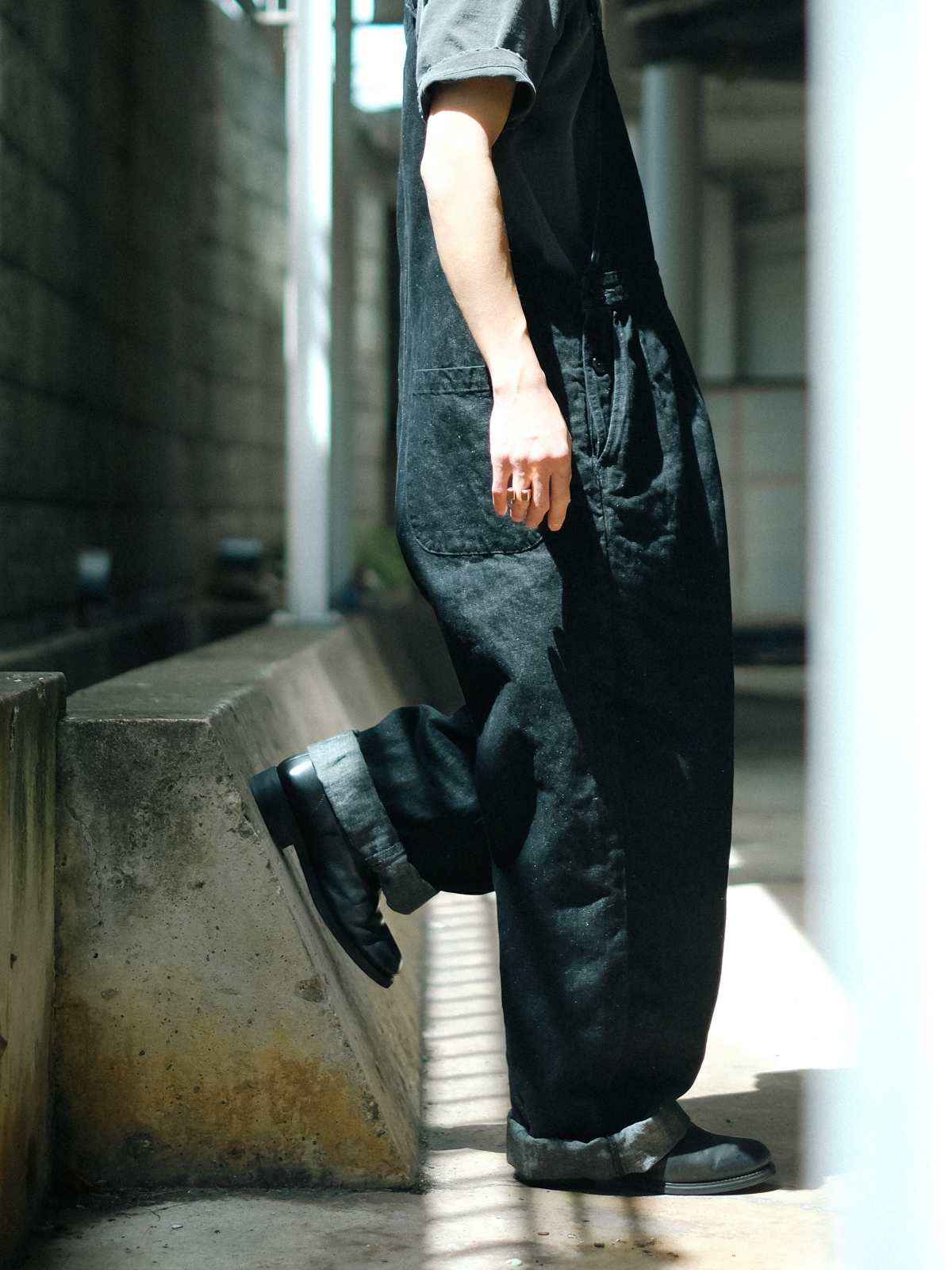 ヘンプ混のブラックデニムを使用した、雰囲気の良いサロペットが<OUTIL>から。