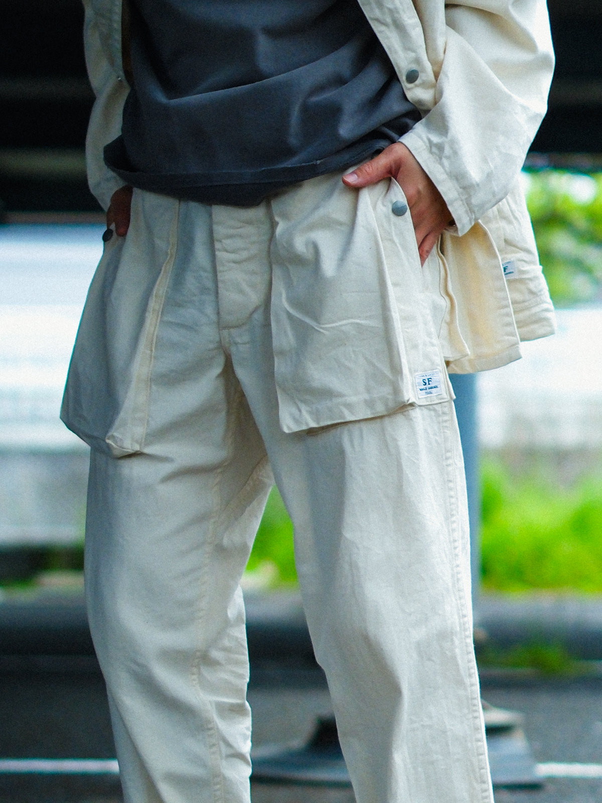 SASSAFRAS:Digs Crew Pants 4/5_8oz Denim – Natural